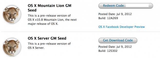 โดยตัว 10.8 Golden Master ได้ปล่อยให้โหลดได้แล้วใน Mac App Store ในขนาด 4.34 GB (เป็น developer เช่นกัน)
