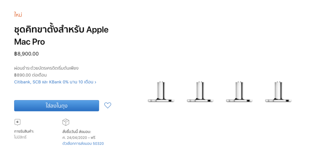 ชุดคิทขาตั้งสำหรับ Mac Pro ราคา 8,900 บาท สั่งซื้อได้ที่ : https://apple.co/3epC2K2