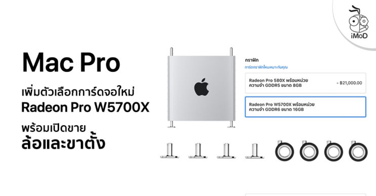 Apple ได้เพิ่มตัวเลือกปรับแต่งการ์ดจอ Radeon Pro W5700X สำหรับ Mac Pro พร้อมกันนี้ยังได้เปิดขายล้อและขาตั้งของ Mac Pro อีกด้วย
