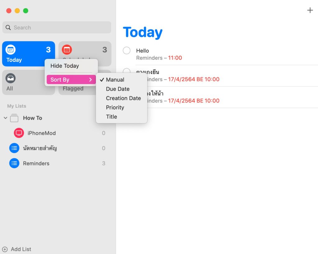 - สามารถจัดเรียง Today Smart List ได้ แบบลากรายการแล้ววาง
