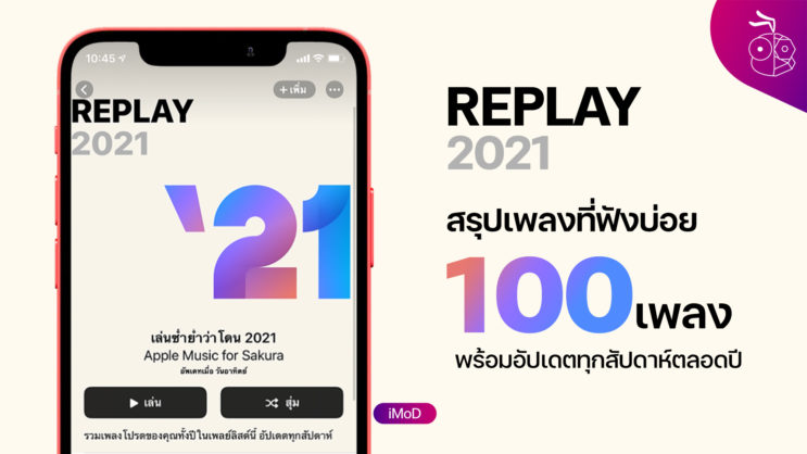 ถึงแม้จะเข้าสู่ปี 2021 มาเพียงเดือนครึ่ง Apple ก็ได้ปล่อยเพลย์ลิสต์ Replay 2021 มาให้ผู้ใช้ได้ชมและฟัง 100 อันดับเพลงที่เราฟังมากที่สุดในปีนี้ พร้อมอัปเดตทุก ๆ สัปดาห์อีกด้วย