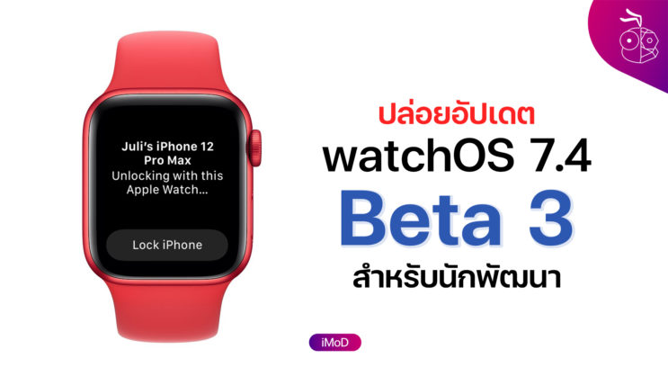 ใน watchOS 7.4 เวอร์ชัน Beta มาพร้อมฟีเจอร์ Unlock with Apple Watch ผู้ใช้สามารถปลดล็อค iPhone ด้วย Apple Watch ได้ ทำงานร่วมกับ iOS 14.5 ช่วยให้ผู้ใช้ที่สวมใส่หน้ากากปลดล็อค iPhone ได้สะดวกมากขึ้น