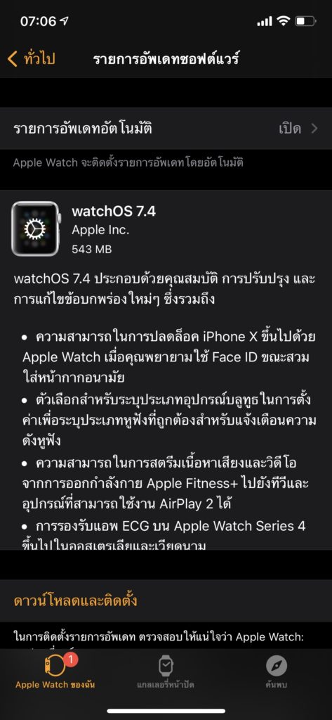 ผู้ใช้ Apple Watch รุ่นรองรับ อัปเดตเป็น watchOS 7.4 ได้เลยผ่าน Software Update ใน iPhone ที่เชื่อมต่อ, โดยวาง Apple Watch ไว้บนที่ชาร์จตลอดการอัปเดต และแบตต้องมากกว่า 50%