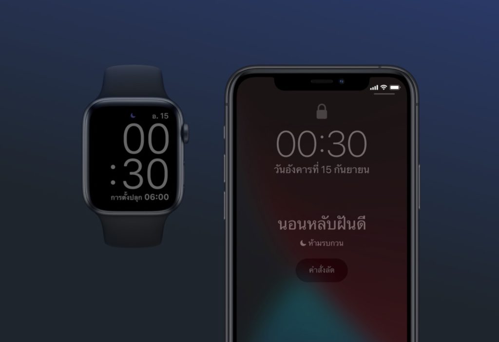 เมื่อถึงเวลานอนก็เปิดโหมดห้ามรบกวนอัตโนมัติ Apple Watch จะตรวจจับการเคลื่อนไหวและการหายใจ พร้อมแยกแยะระหว่างภาวะหลับและภาวะตื่น เมื่อถึงเวลาตื่นนอนก็ปลุกและสรุปจำนวนชั่วโมงการนอนให้ทราบ