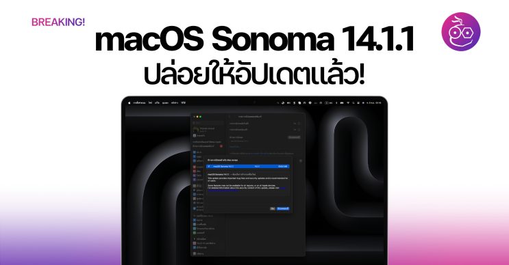 Apple ปล่อย macOS Sonoma 14.1.1 ให้อัปเดตเช่นกัน โดยเวอร์ชันนี้มาพร้อมการแก้ปัญหาต่าง ๆ พร้อมด้วยการอัปเดต