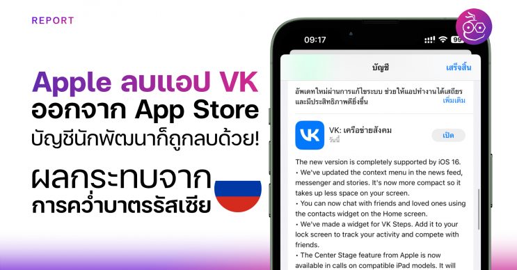 Apple ลบแอป VK ออกจาก App Store แล้ว! บัญชีนักพัฒนาก็ถูกลบด้วย ผลพวงมาจากการคว่ำบาตรรัสเซีย