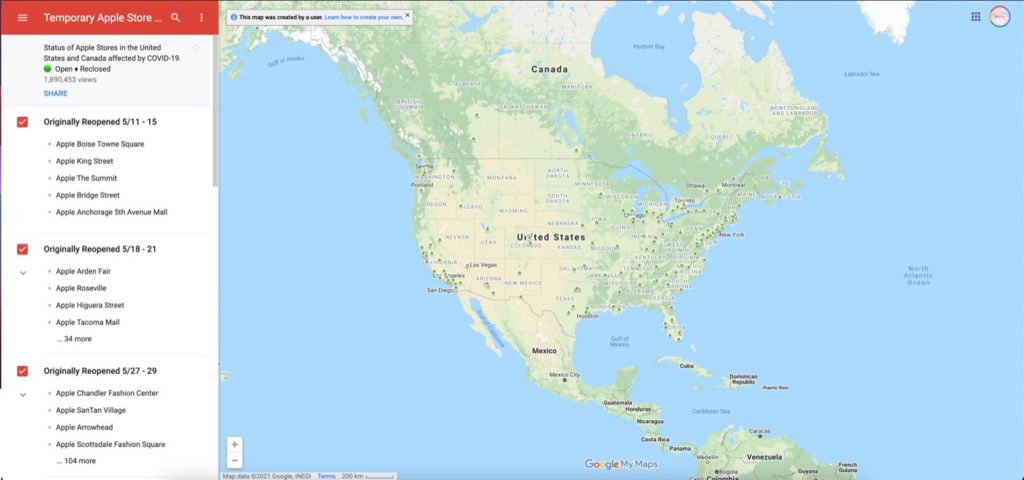 ล่าสุดหน้าร้าน Apple Store 270 แห่งในสหรัฐอเมริกาก็ได้เปิดทำการในวันที่ 1 มีนาคม 2021 พร้อมกันทั้งหมด