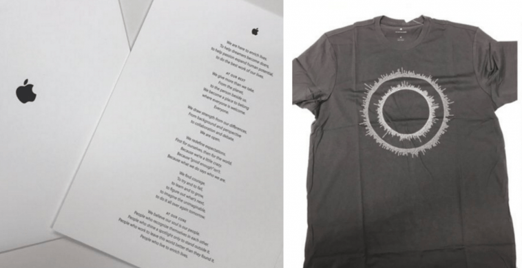 เป็นธรรมเนียมช่วงเดือนธันวาคมของทุกปี ที่ Apple จะมอบของขวัญ เพื่อเป็นขวัญและกำลังใจให้พนักงานหน้าร้านของ Apple ทั่วโลก โดยในปี 2016 นี้เป็นเสื้อยืดและการ์ดอวยพรพิเศษ