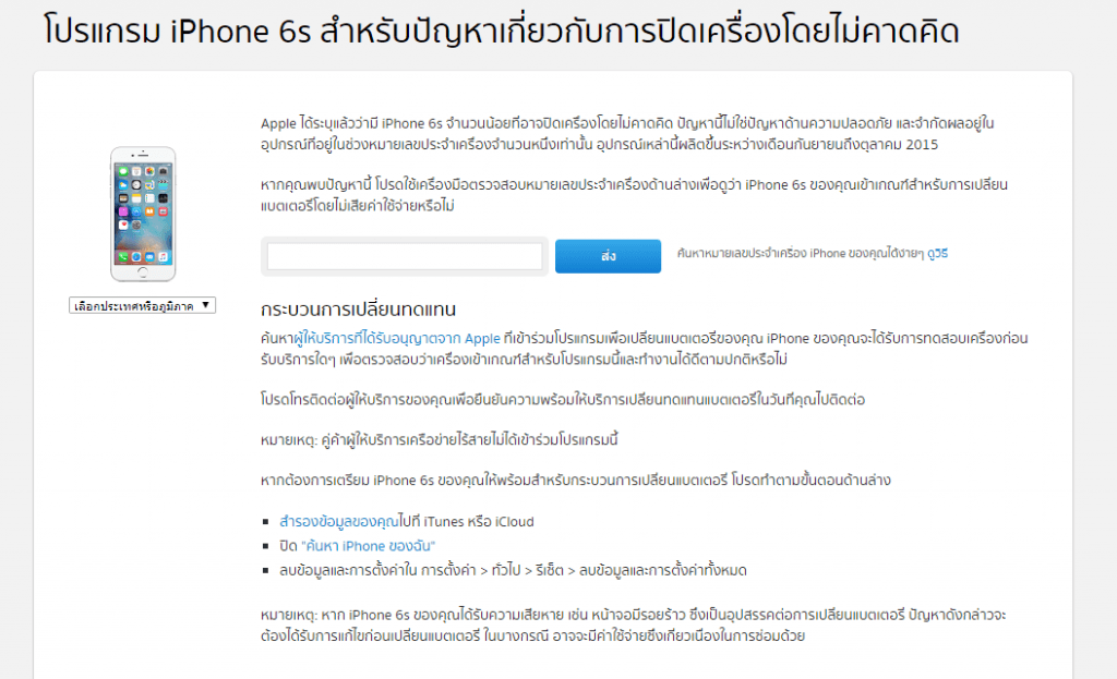 Apple เผยต่อว่าหากผู้ใช้ iPhone ที่ยังเจอปัญหาดังกล่าวอยู่และยังไม่สามารถแก้ไขได้ ให้รีบติดต่อศูนย์บริการของ Apple เพื่อรับการแก้ไขปัญหาอย่างเร่งด่วน หรือสามารถตรวจสอบข้อมูลเบื้องต้นผ่าน โปรแกรม iPhone 6s สำหรับปัญหาเกี่ยวกับการปิดเครื่องโดยไม่คาดคิด ของ Apple ได้
