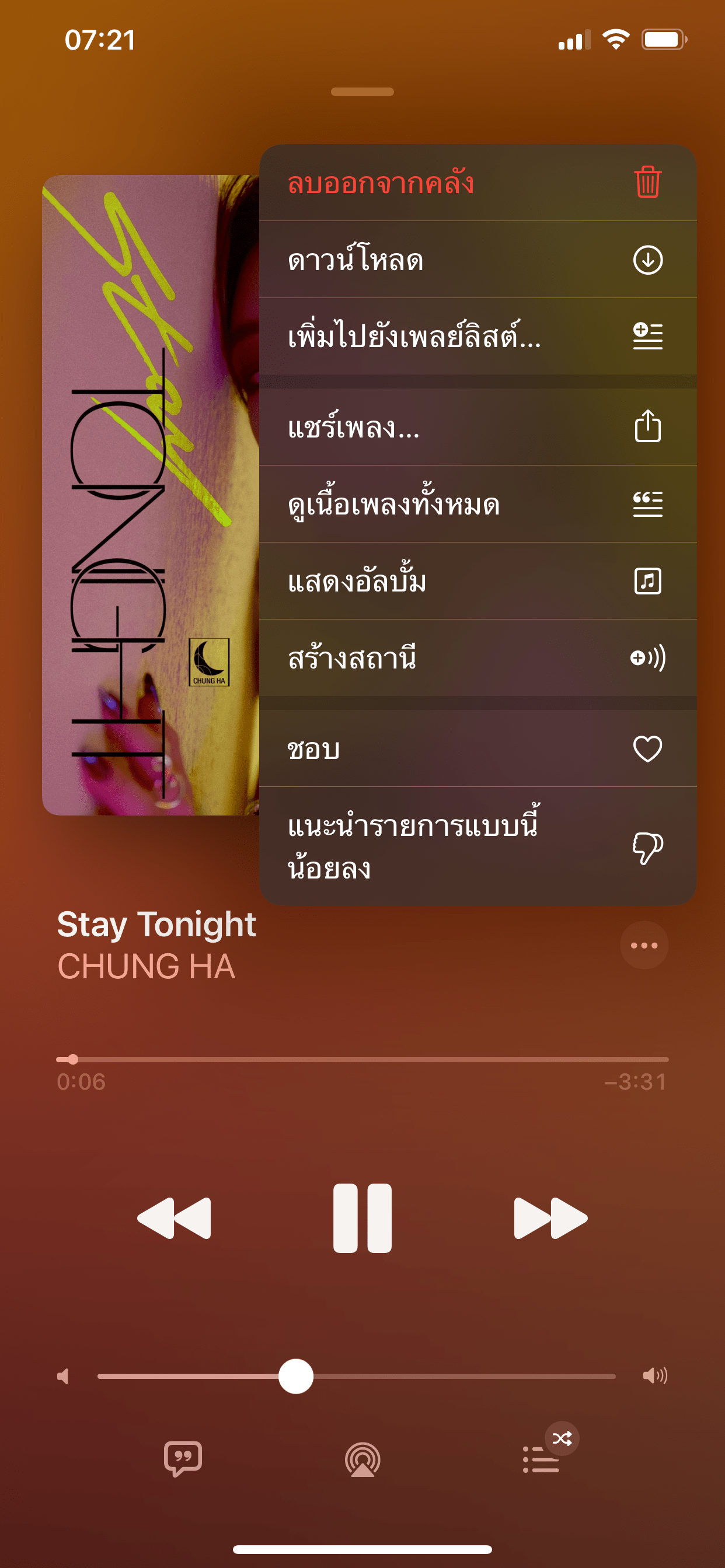 เพิ่มการปัดเพลงในแอป Music เพื่อเพิ่มรายการถัดไป เล่นหลังสุด ลบ หรือดาวน์โหลดเพลง