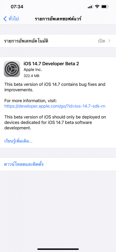 Apple ปล่อย iOS 14.7 Developer Beta 2 ให้นักพัฒนาทดสอบ เน้นแก้ไขปัญหาและปรับปรุงประสิทธิภาพจากเวอร์ชันก่อนหน้า นักพัฒนาอัปเดตได้เลย