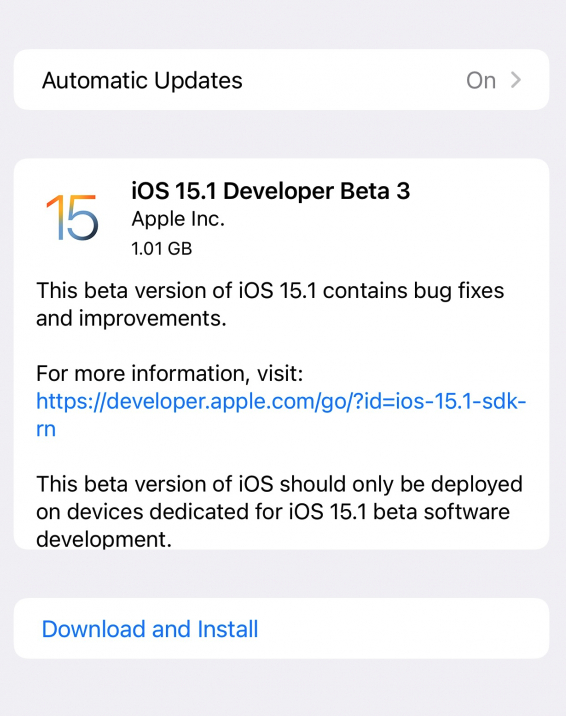 iOS 15.1 Beta เป็นเวอร์ชันทดสอบ