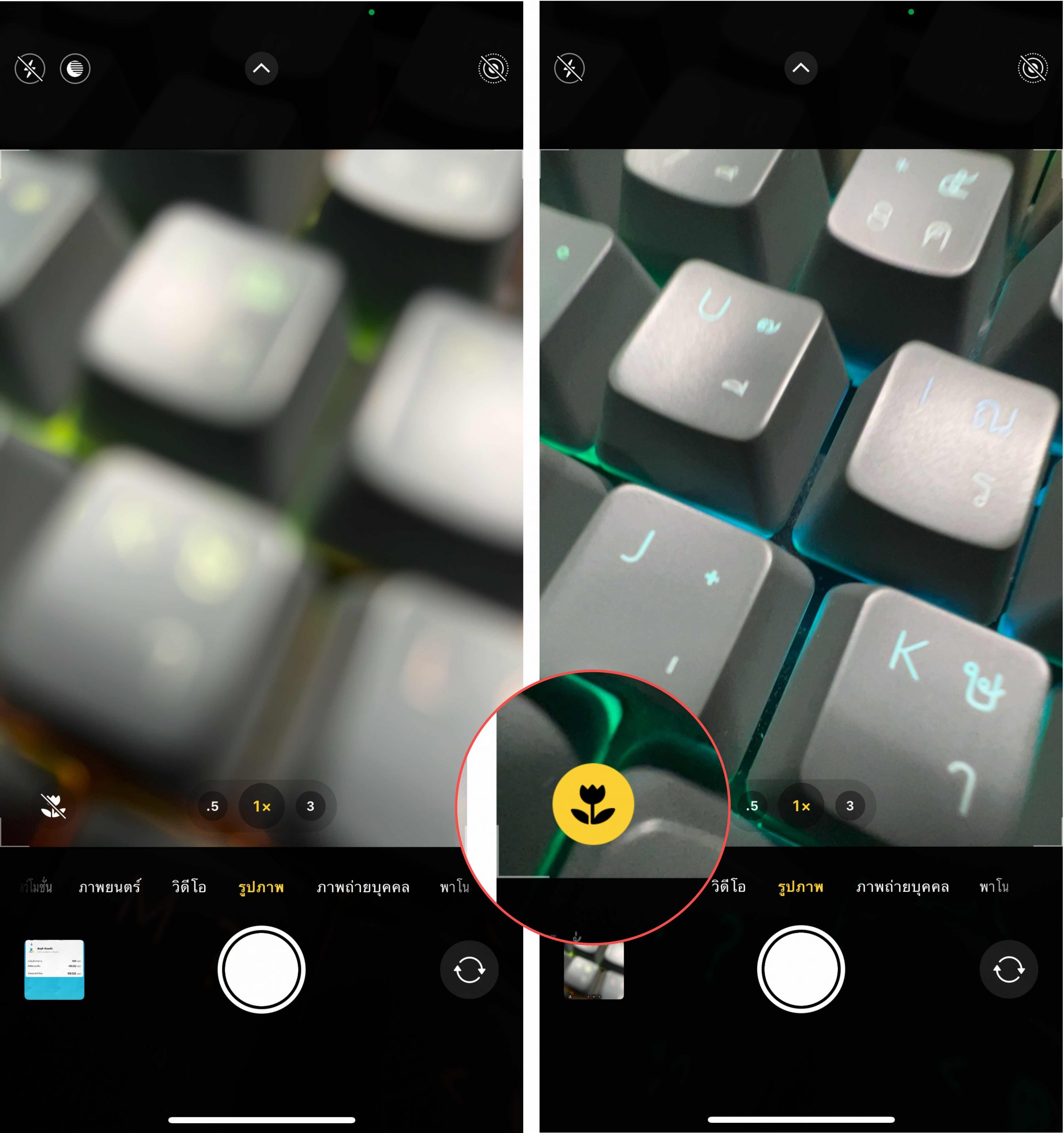 Camera : เพิ่มปุ่มเปิดโหมดมาโคร หากฟีเจอร์ออโต้มาโครถูกปิดการใช้งานไว้ (iPhone 13 Pro, iPhone 13 Pro Max)