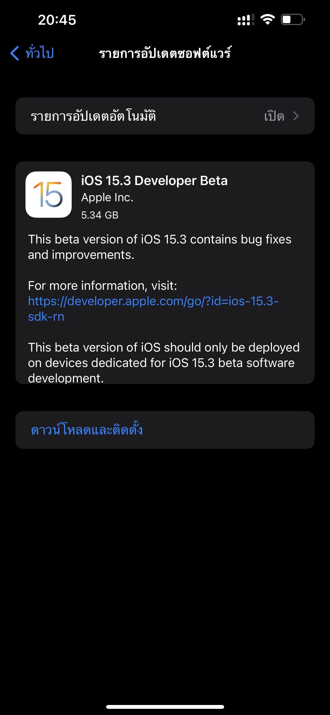 iOS 15.3 ตอนนี้ยังเป็นเวอร์ชัน Beta คือ เป็นเวอร์ชันทดสอบสำหรับนักพัฒนา เวอร์ชันสำหรับผู้ใช้ทั่วไปจะปล่อยให้อัปเดตภายหลัง