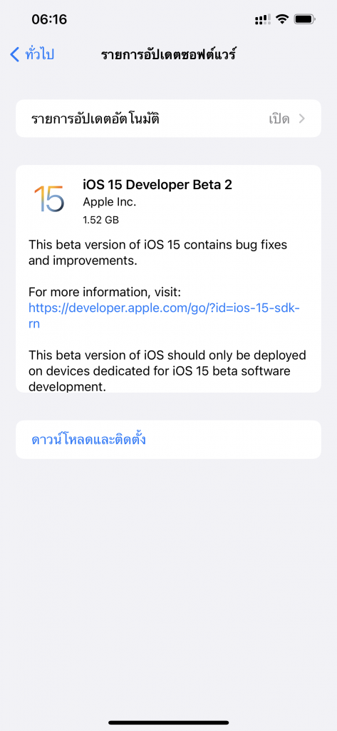 iOS 15 Beta เป็นเวอร์ชันทดสอบ