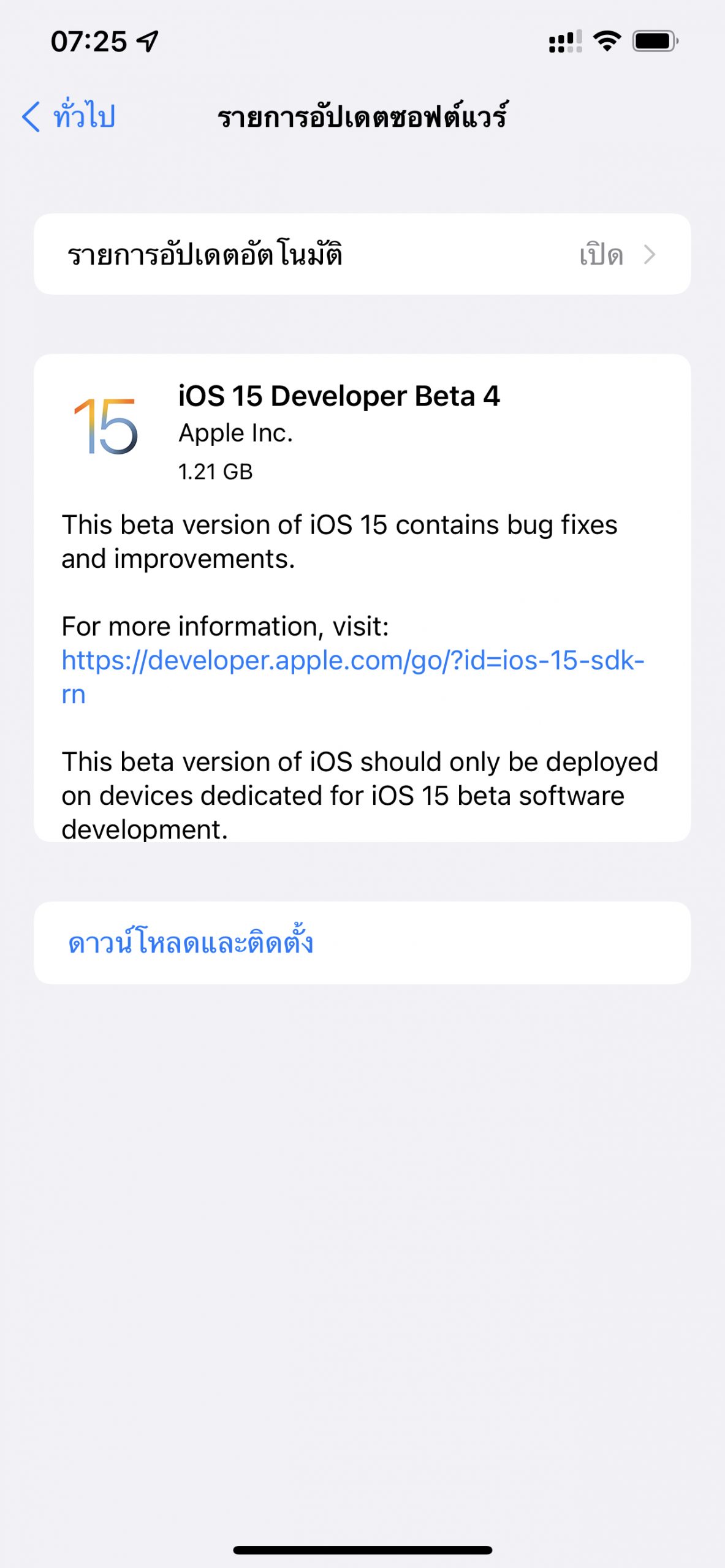 iOS 15 Beta เป็นเวอร์ชันทดสอบ