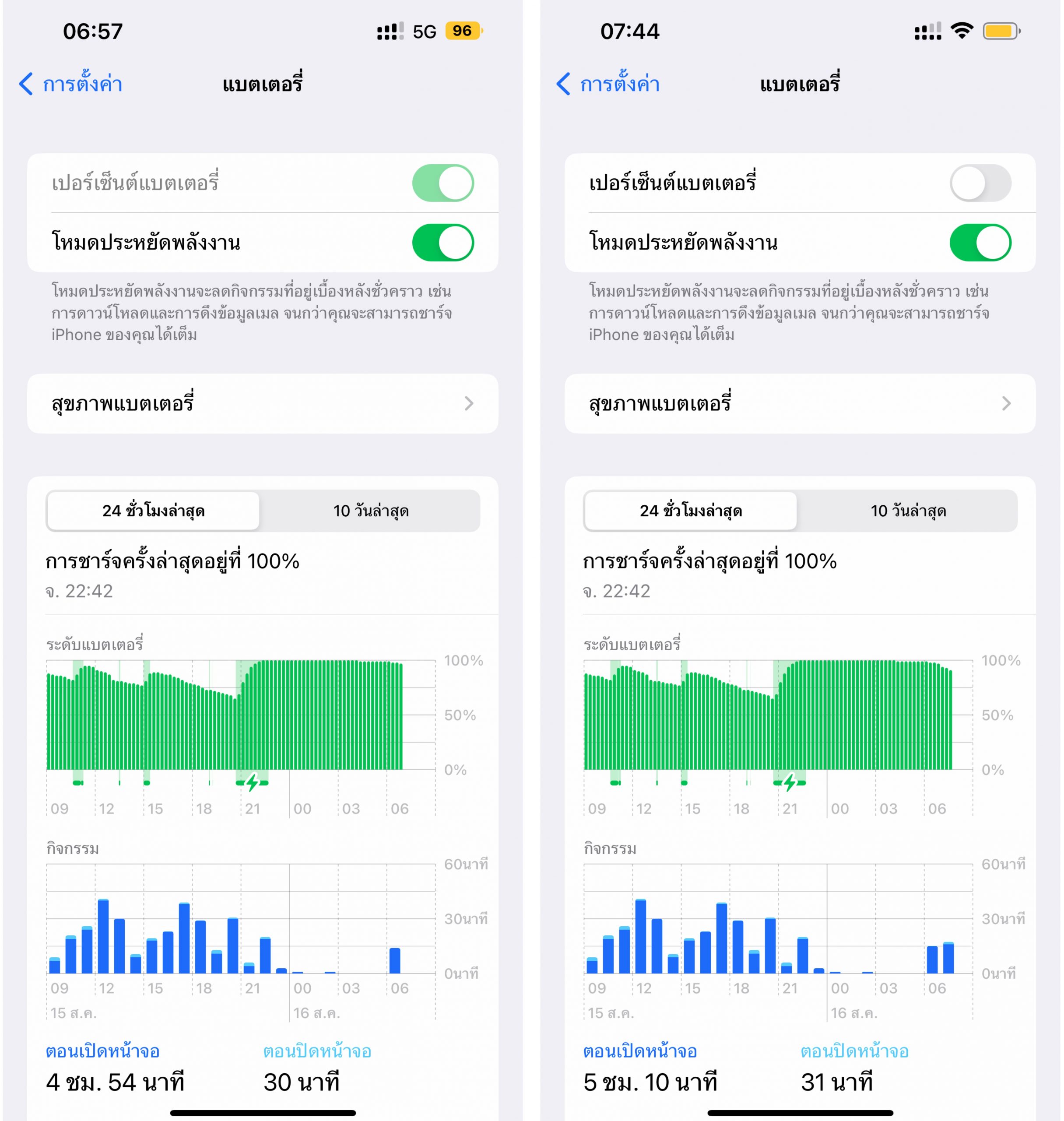 เมื่อเปิดโหมดประหยัดพลังงาน, ระบบจะไม่บังคับให้แสดงเปอร์เซ็นแบตอัตโนมัติแล้ว
