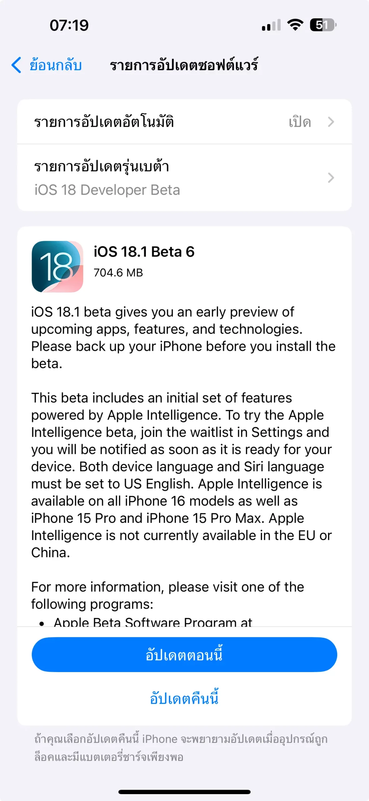 iOS 18.1 ยังเป็นเวอร์ชันทดสอบ