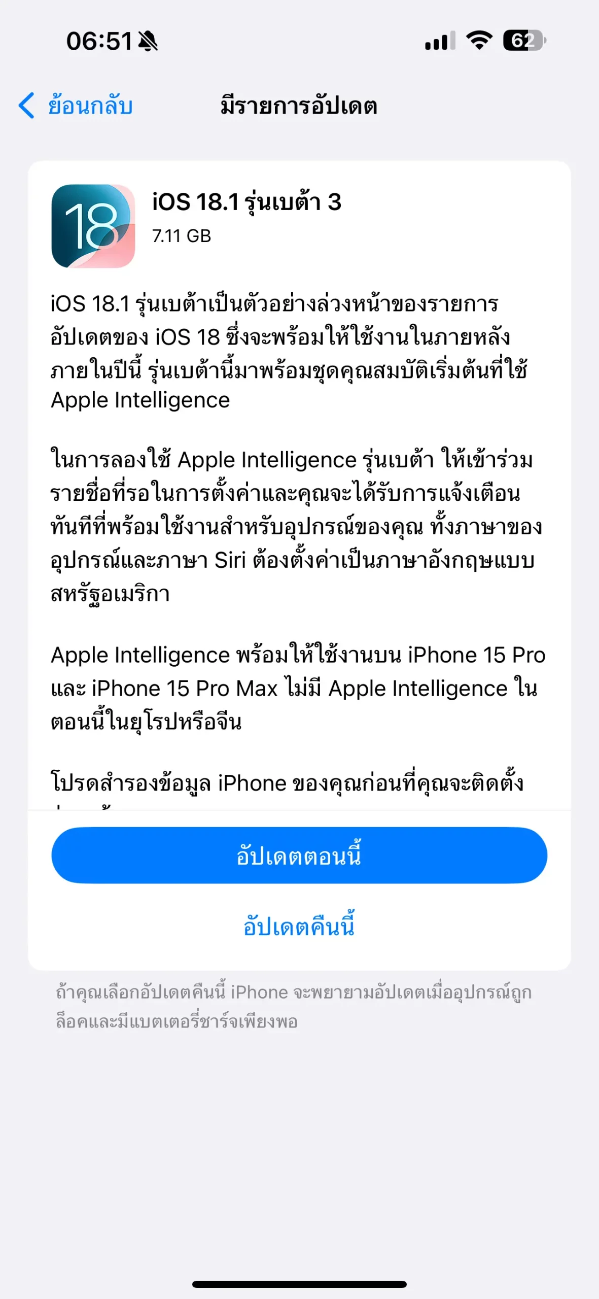 iOS 18.1 ยังเป็นเวอร์ชันทดสอบ