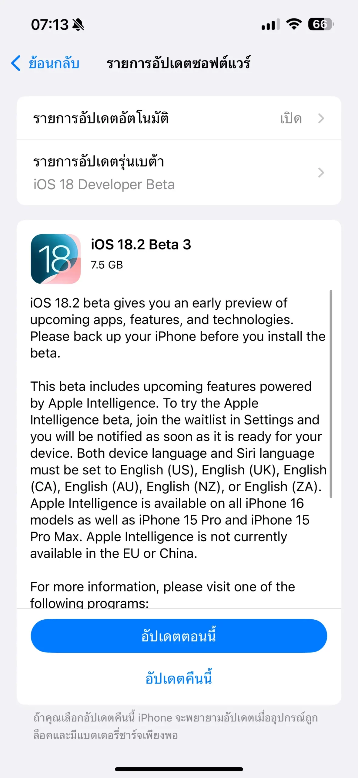 iOS 18.2 ยังเป็นเวอร์ชันทดสอบ