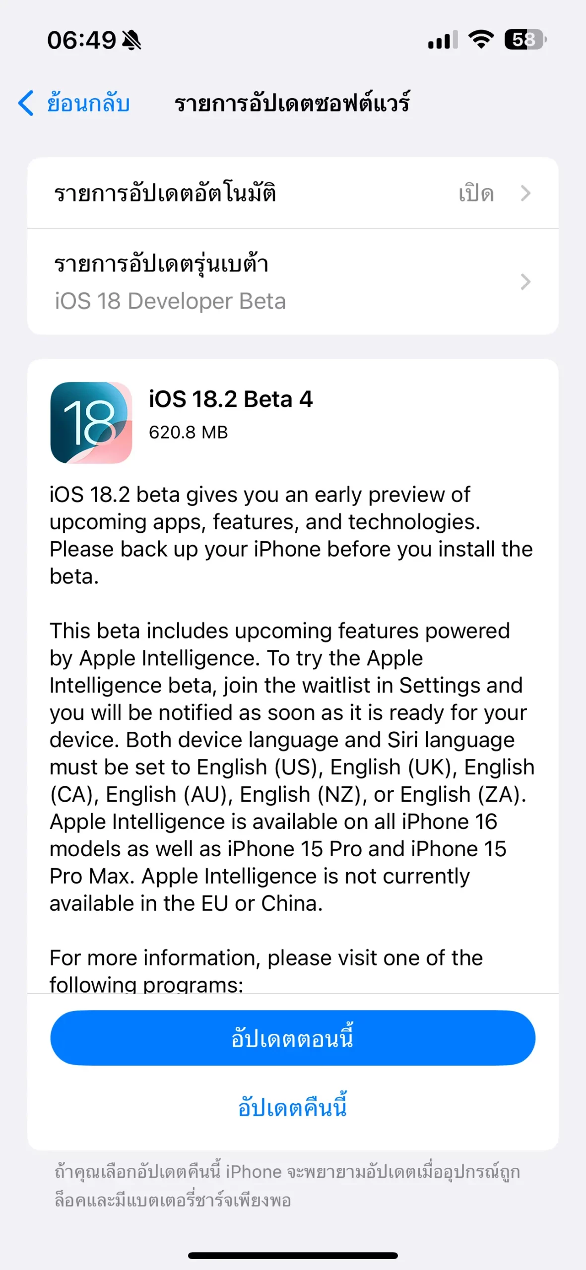 iOS 18.2 ยังเป็นเวอร์ชันทดสอบ