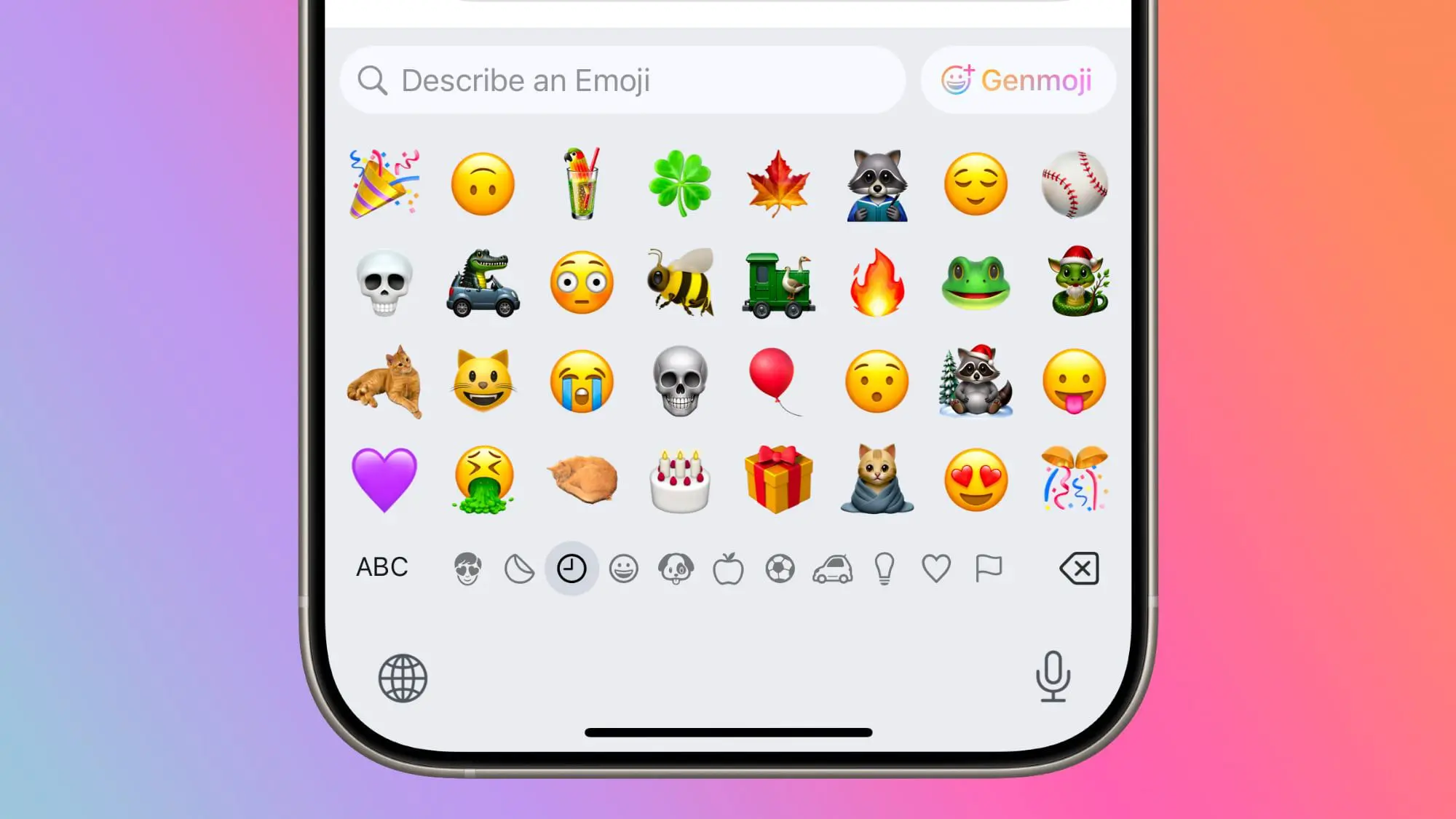 ที่คีย์บอร์ดจะแสดงปุ่มเป็นข้อความ Genmoji จากเดิมที่แสดงเป็นไอคอน เพื่อให้ผู้ใช้เข้าใจว่าเป็นปุ่มสำหรับการสร้าง Genmoji