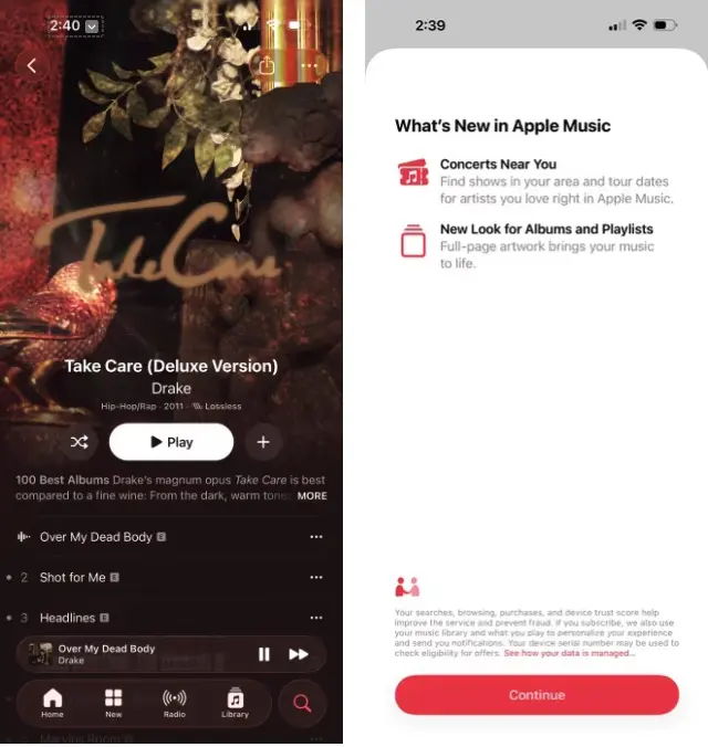 มีการเพิ่มส่วน “Concerts Near You” ช่วยติดตามตารางทัวร์ของศิลปินในคลังเพลงของผู้ใช้ และมุมมองโปรไฟล์ถูกออกแบบใหม่ให้ใช้งานง่ายขึ้น