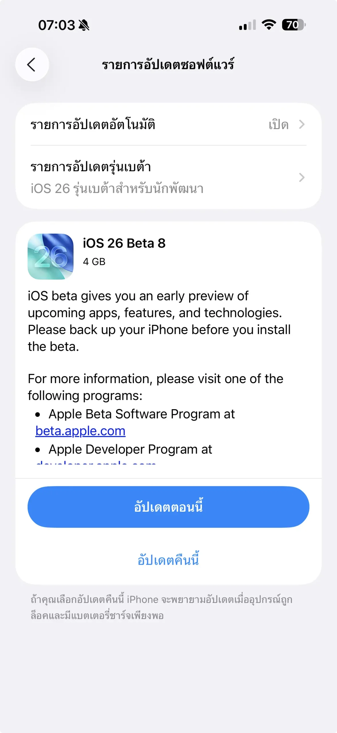 Apple ปล่อย iOS 26 Beta 8 ให้ทดสอบ คาดเป็นตัวสุดท้ายก่อน RC
