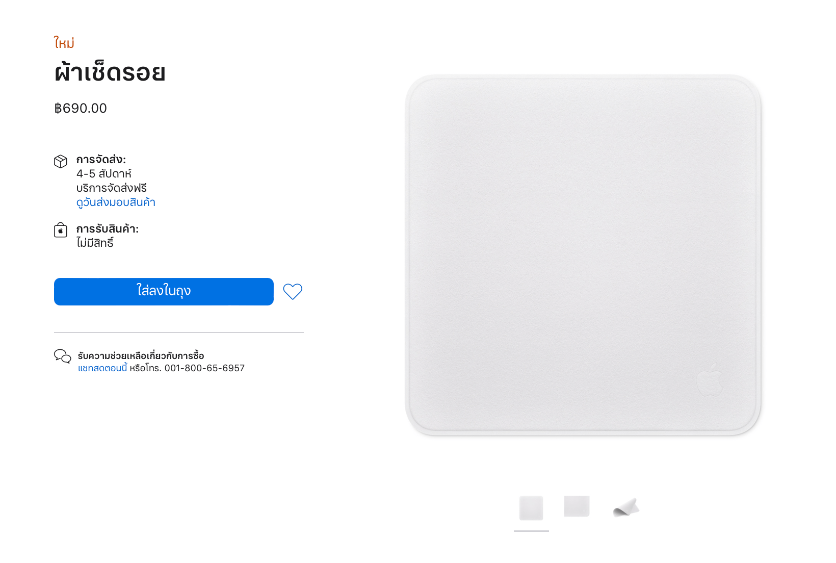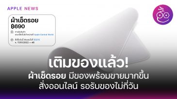 Apple เปิดขาย “ผ้าเช็ดรอย” สำหรับสินค้า Apple ที่มีหน้าจอ ใช้เช็ดทำความสะอาดจอ เป็นผ้าแบบอ่อนนุ่ม ไม่ทำร้ายหน้าจอ ขายใน ราคา 690 บาท สั่งซื้อได้แล้ววันนี้!