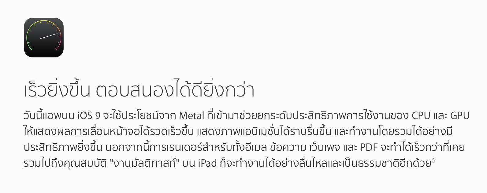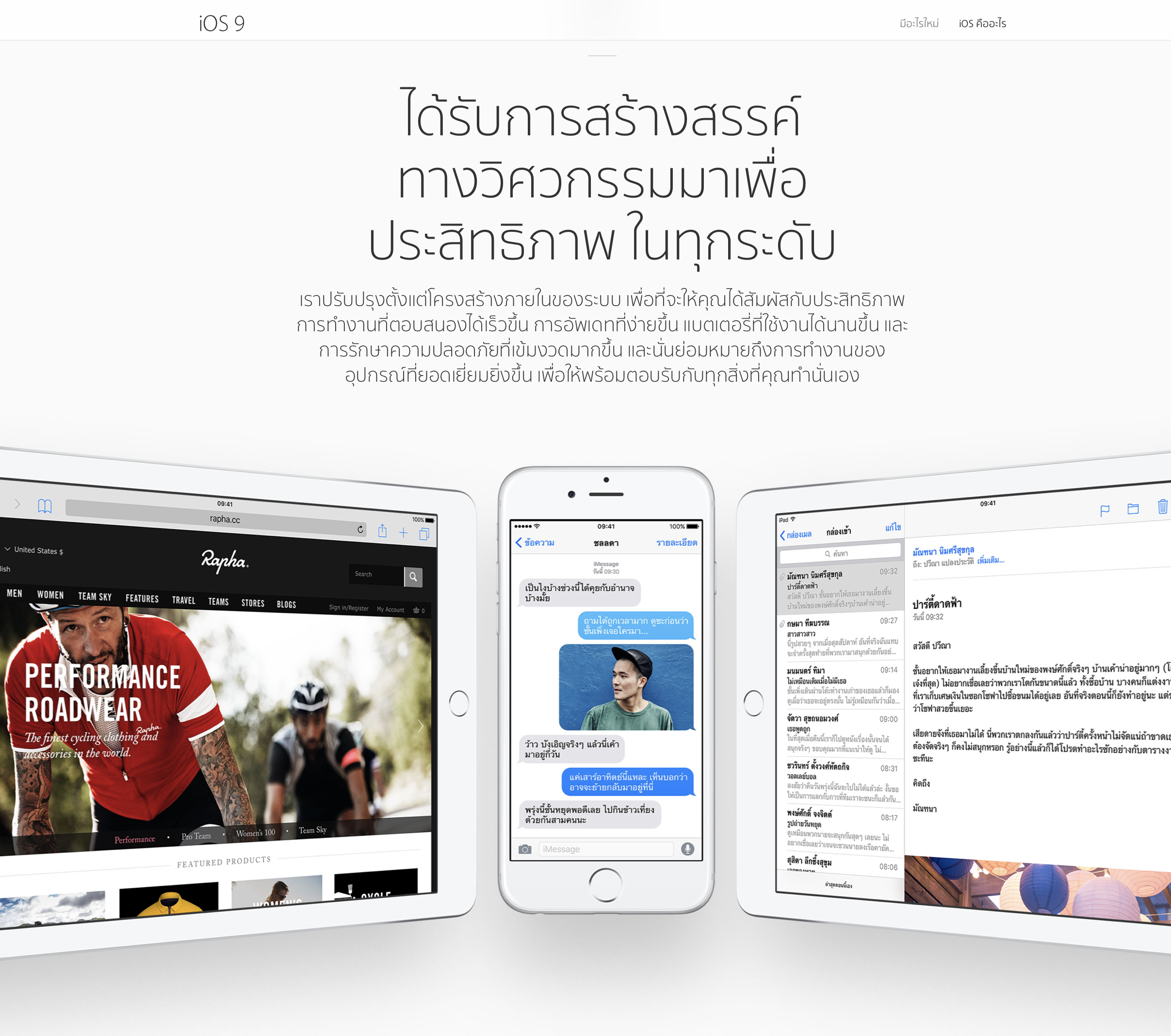 รายละเอียดฟีเจอร์ใหม่ใน iOS 9 : https://www.apple.com/th/ios/whats-new/