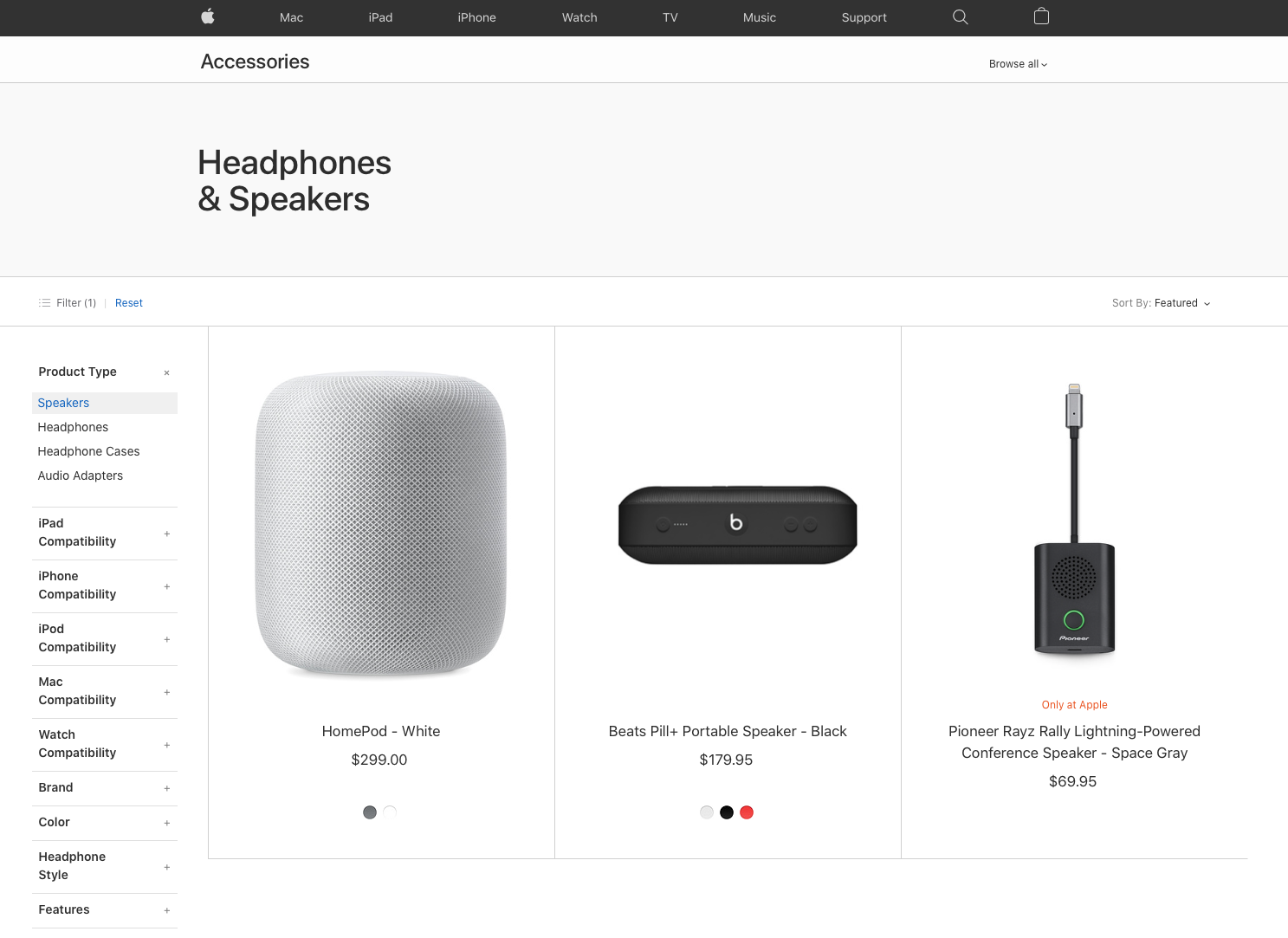 Bloomberg รายงานว่า Apple ได้ถอดสินค้าหูฟัง, ลำโพงแบรนด์อื่น (Third-party) อย่าง Sonos, Bose, Logitech ออกจาก Apple Store ออนไลน์ช่วงปลายเดือน ก.ย. ที่ผ่านมา โดยถ้าเข้าไปค้นหาก็จะไม่พบสินค้าเหล่านั้นแล้ว