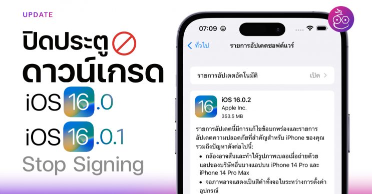 ปิดไม่ให้ดาวน์เกรดกลับไป iOS 16.0 และ 16.0.1