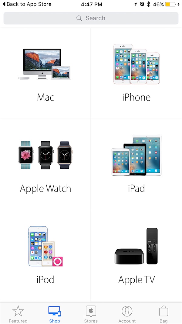 ตัวอย่างหน้าตาของแอป Apple Store