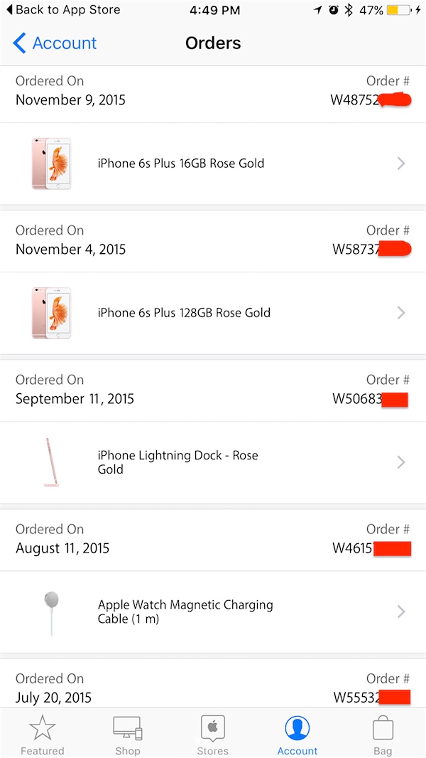 4. Account บัญชีของผู้ใช้ที่จะรวมรายการประวัติการสั่งซื้อและสถานะเกี่ยวกับการซื้อสินค้าต่างๆ กับทาง Apple