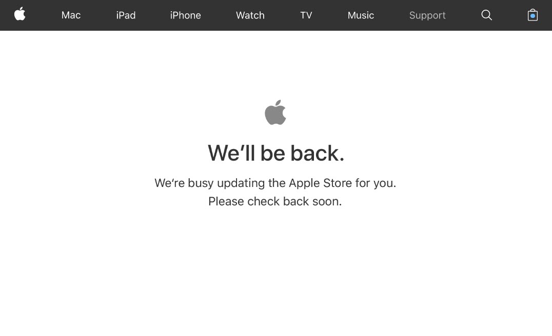วันที่ 24 พ.ย. 2560 เว็บไซต์ Apple Store Online ประเทศสหรัฐ ก็มีการปิดปรับปรุงชั่วคราว คาดว่าเป็นการปิดปรับปรุงเพื่อนำเสนอสินค้าโปรโมชั่นต่างๆ ในวัน Black Friday นั่นเอง ต้องติดตามกันว่า Apple จะจัดโปรโมชั่นหรือลดราคาสินค้าหรือไม่
