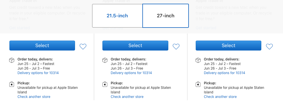ใน Apple Store ออนไลน์สหรัฐ พบว่า iMac รุ่น 27 นิ้วทุกโมเดล สินค้าไม่พร้อมขายที่หน้าร้าน Apple Store เกือบทุกแห่ง