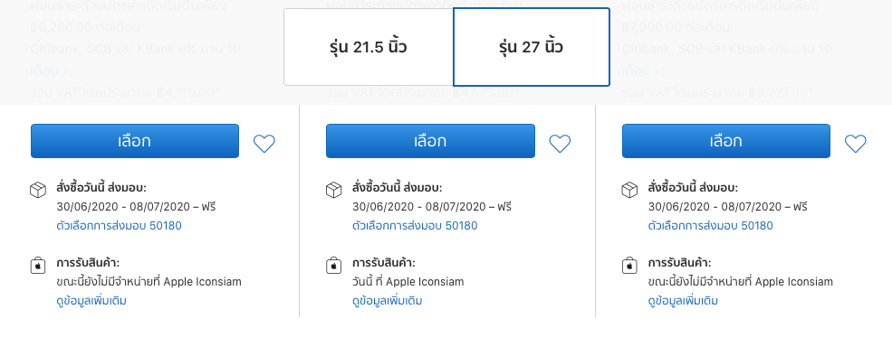 เมื่อเข้าไปดูที่เว็บไซต์ Apple จะพบว่า iMac รุ่น 27 นิ้วหลายโมเดลสินค้าไม่พร้อมขาย คาดว่ามีการจำกัดสต็อก เพราะอาจมีรุ่นใหม่เปิดตัวใน WWDC 2020