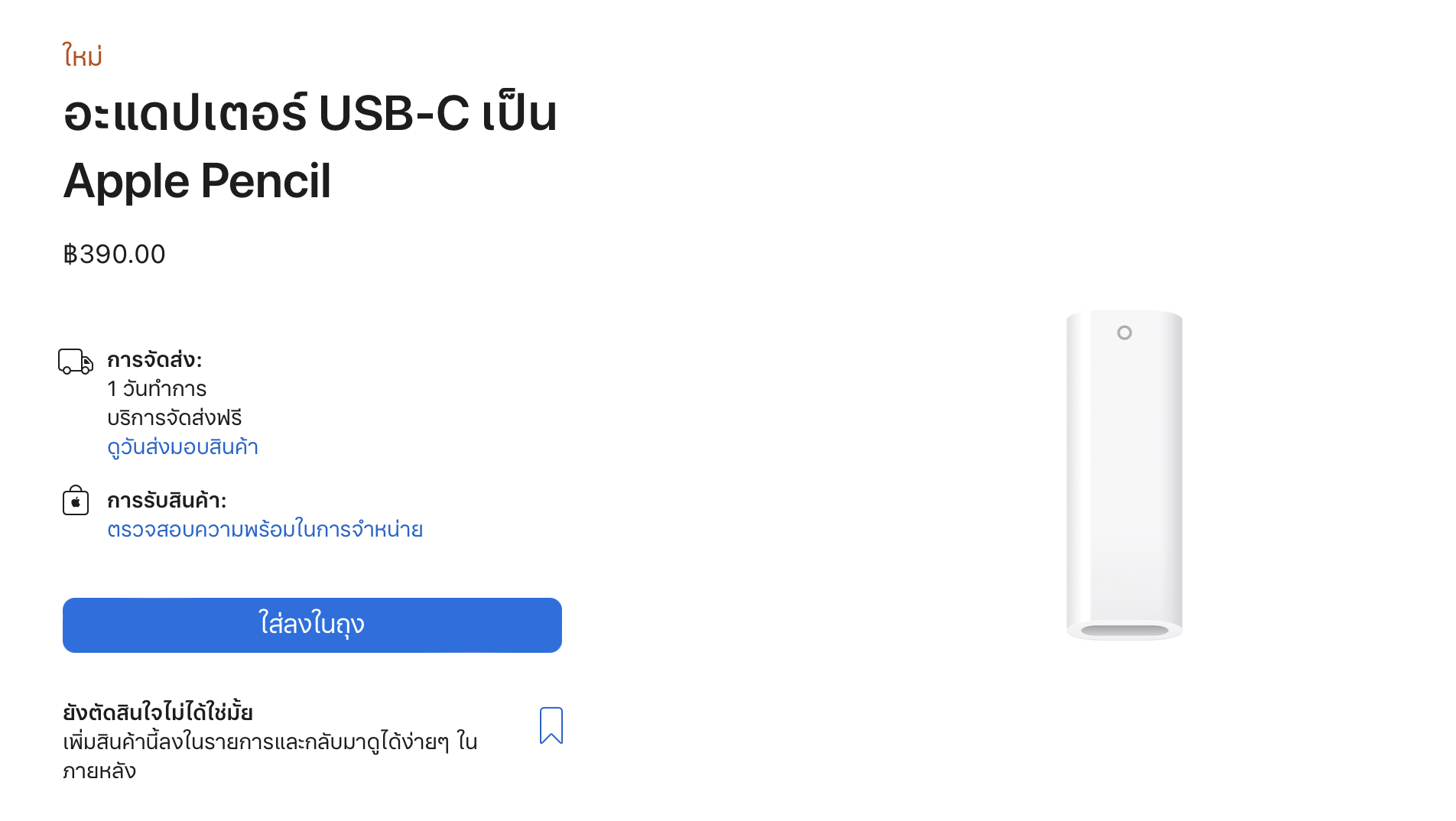 อย่างไรก็ตาม Apple Pencil (รุ่นที่ 1), หัวแปลง USB-C สามารถกดสั่งซื้อได้ที่หน้าเว็บ Apple ซึ่งมีกำหนดรับสินค้าช่วงต้น-กลางเดือน พ.ย. 65