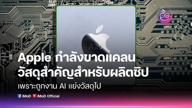 Apple กำลังเจอปัญหาขาดแคลนวัสดุสำคัญสำหรับการผลิตชิป หลังจากธุรกิจ AI กำลังบูม ทำให้ความต้องการวัสดุเดียวกันเพิ่มมากขึ้น จนถึงขั้นขาดแคลน