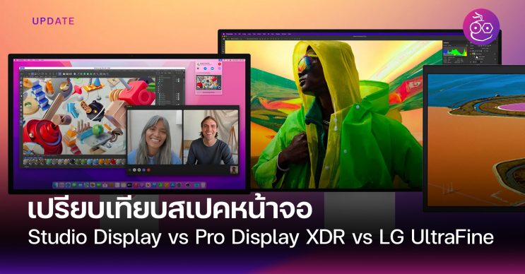 Apple ได้เปิดตัวหน้าจอใหม่ Studio Display ในงาน Apple Event ที่ผ่านมา เรามาชมข้อมูลเปรียบเทียบสเปคกับหน้าจอ Pro Display XDR และ LG UltraFine กันว่าจะมีจุดไหนแตกต่างกันบ้าง เผื่อเป็นข้อมูลในการตัดสินใจซื้อ
