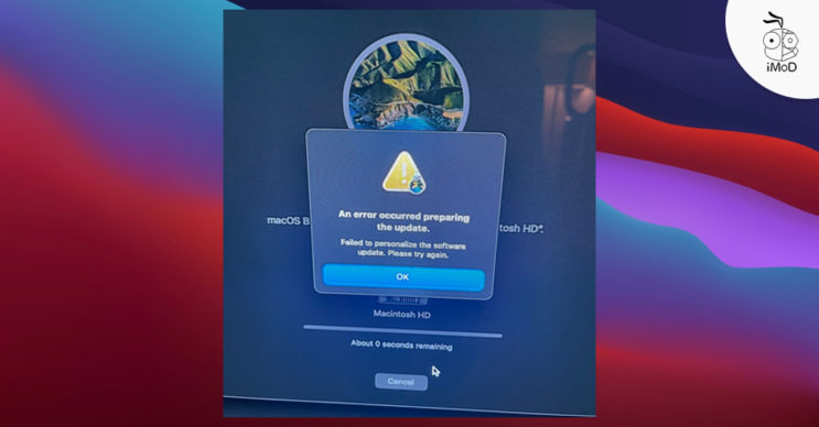 ปัญหานี้เกิดจากการลบซอฟต์แวร์และติดตั้งใหม่ก่อนที่จะทำการอัปเดตเป็น macOS Big Sur 11.0.1 บน Mac รุ่นชิป M1 โดยระหว่างการการติดตั้งใหม่จะพบข้อความที่ระบุถึงข้อผิดพลาดว่า “An error occurred preparing the update. Failed to personalize the software update. Please try again”