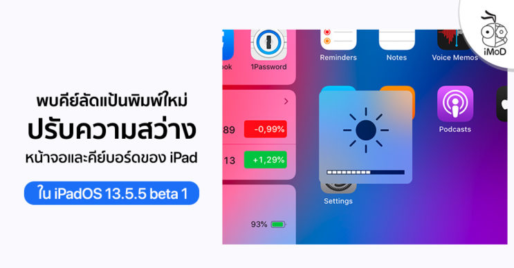 รายงานจาก 9to5mac ระบุว่าพบฟีเจอร์คีย์ลัดการปรับความสว่างของหน้าจอและแป้นพิมพ์ iPad ในชุดคำสั่ง iPadOS 13.5.5 beta 1 ที่ปล่อยให้นักพัฒนาทดสอบเมื่อไม่กี่วันมานี้