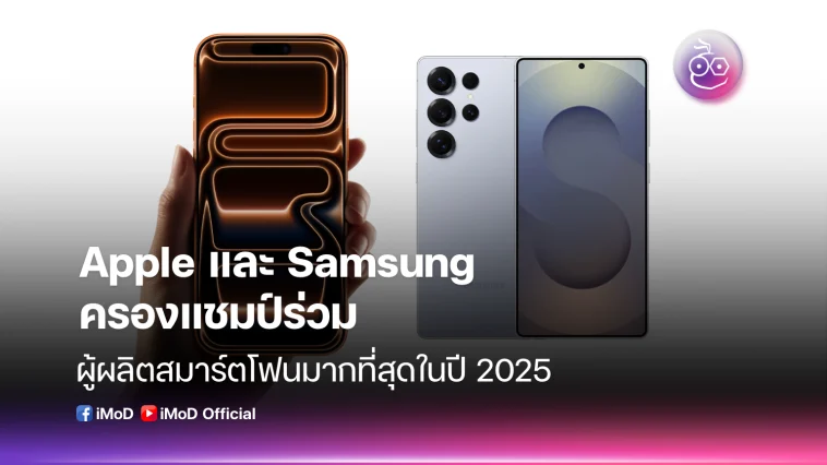 TrendForce รายงานว่า Apple และ Samsung ครองแชมป์ร่วม ผู้ผลิตสมาร์ตโฟนมากที่สุดในปี 2025 เป็นปีที่อุตสาหกรรมสมาร์ตโฟนมีการเติบโตเพิ่มขึ้นเล็กน้อย