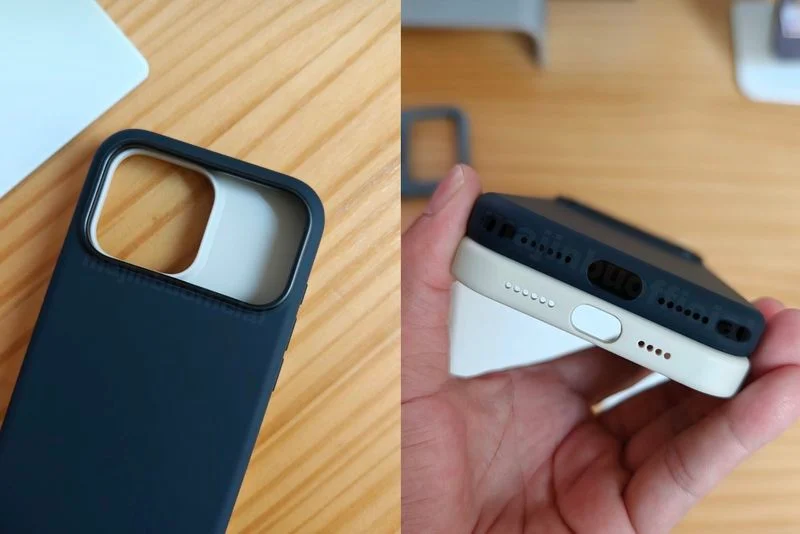 Majin Bu ได้แชร์ภาพเคสที่คาดว่าจะใช้วัสดุ Liquid Silicone ระบุว่าจะมี Liquid Galss effcet ด้วย แต่ยังไม่ชัดเจนว่าหมายถึงอะไร โดยดีไซน์จะดีไซน์จะเป็นริ้วรอบ ๆ บริเวณ MagSafe คล้ายกลับคลื่นตกกระทบ และอาจมีช่องสำหรับเสียบสายคล้องด้วย