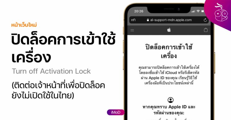 หน้าเว็บช่วยปิดล็อคการเข้าใช้เครื่อง (ติด iCloud)