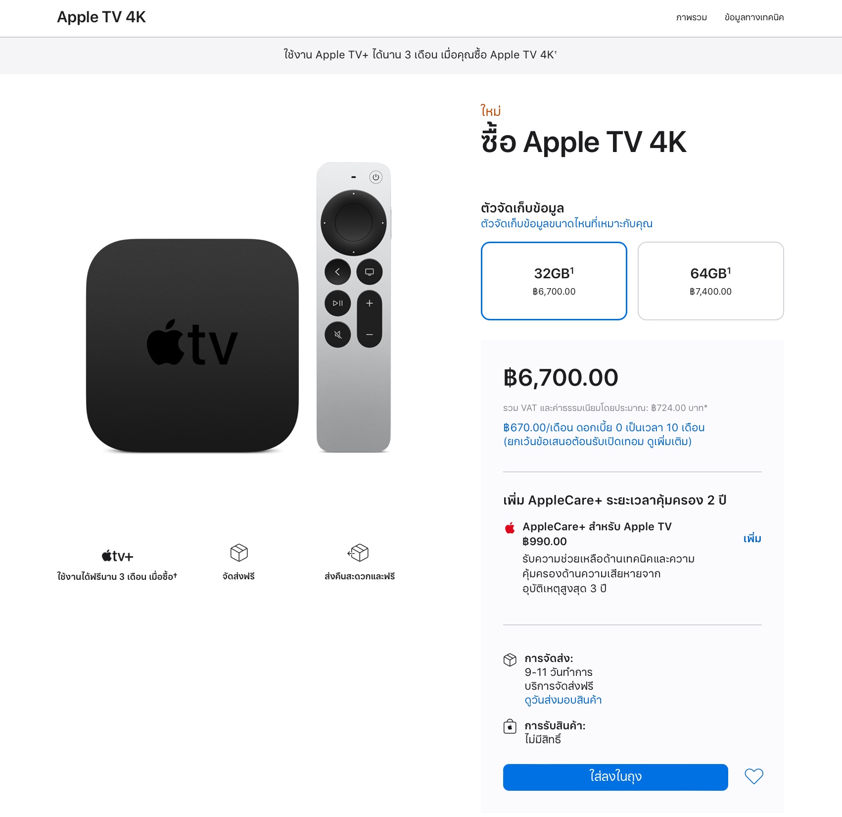 หลังจากรอคอยมานานแสนนาน 3 ส.ค. 64, Apple TV 4K รุ่นชิป A12 Bionic กดซื้อได้แล้วที่ Apple Store ออนไลน์ เริ่มต้น 6,700 บาท