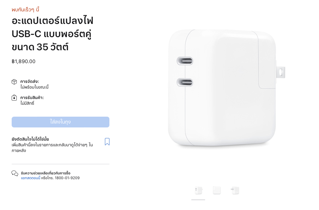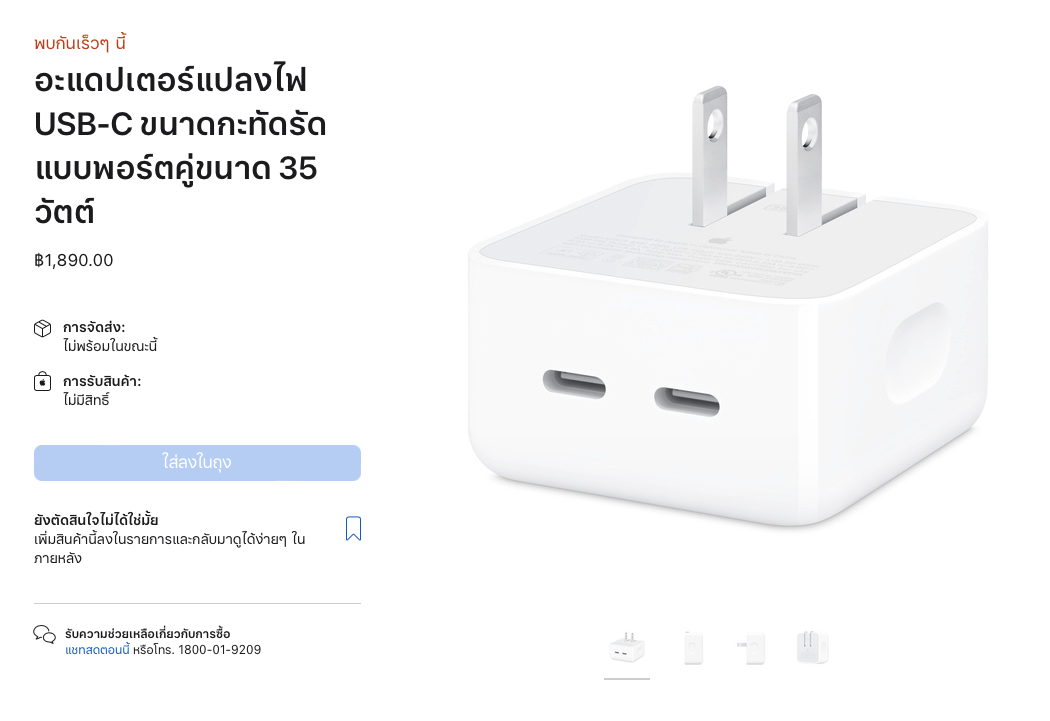 อะแดปเตอร์ USB-C พอร์ตคู่ 35W ทั้ง 2 แบบยังไม่เปิดขายในไทย ณ วันที่เผยแพร่ข้อมูลนี้