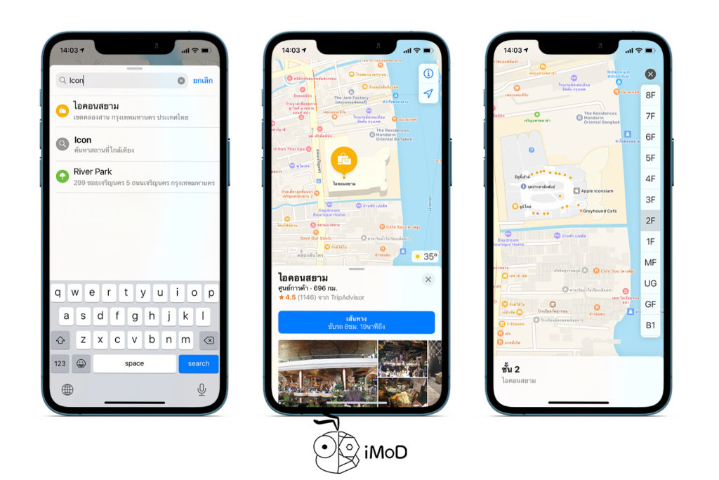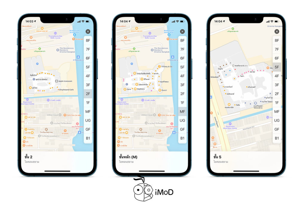 Apple ได้อัปเดตเพิ่มแผนที่และข้อมูลภายในอาคารในห้าง Iconsiam แล้ว ก่อนหน้านี้สามารถดูได้ในห้าง Siam Discovery, Siam Center และ Siam Paragon เท่านั้น