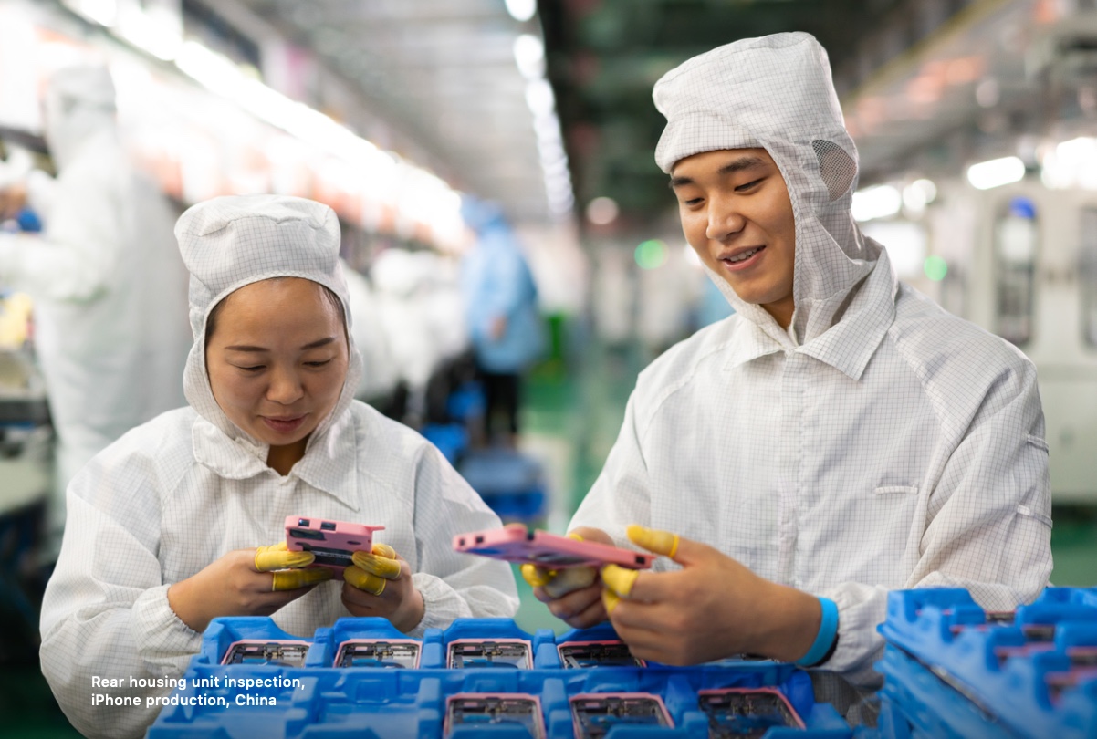 • โรงงานพันธมิตรของ Apple ไม่สามารถเก็บข้อมูลการยืนยันตัวตนเช่น ลายนิ้วมือของพนักงาน Apple ที่เข้าไปยังโรงงานได้ แต่นโยบายข้อนี้ไม่มีผลต่อพนักงานในโรงงาน (Apple ถูกกล่าวหาว่า 2 มาตรฐาน)