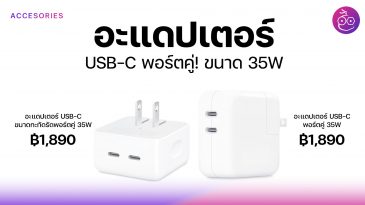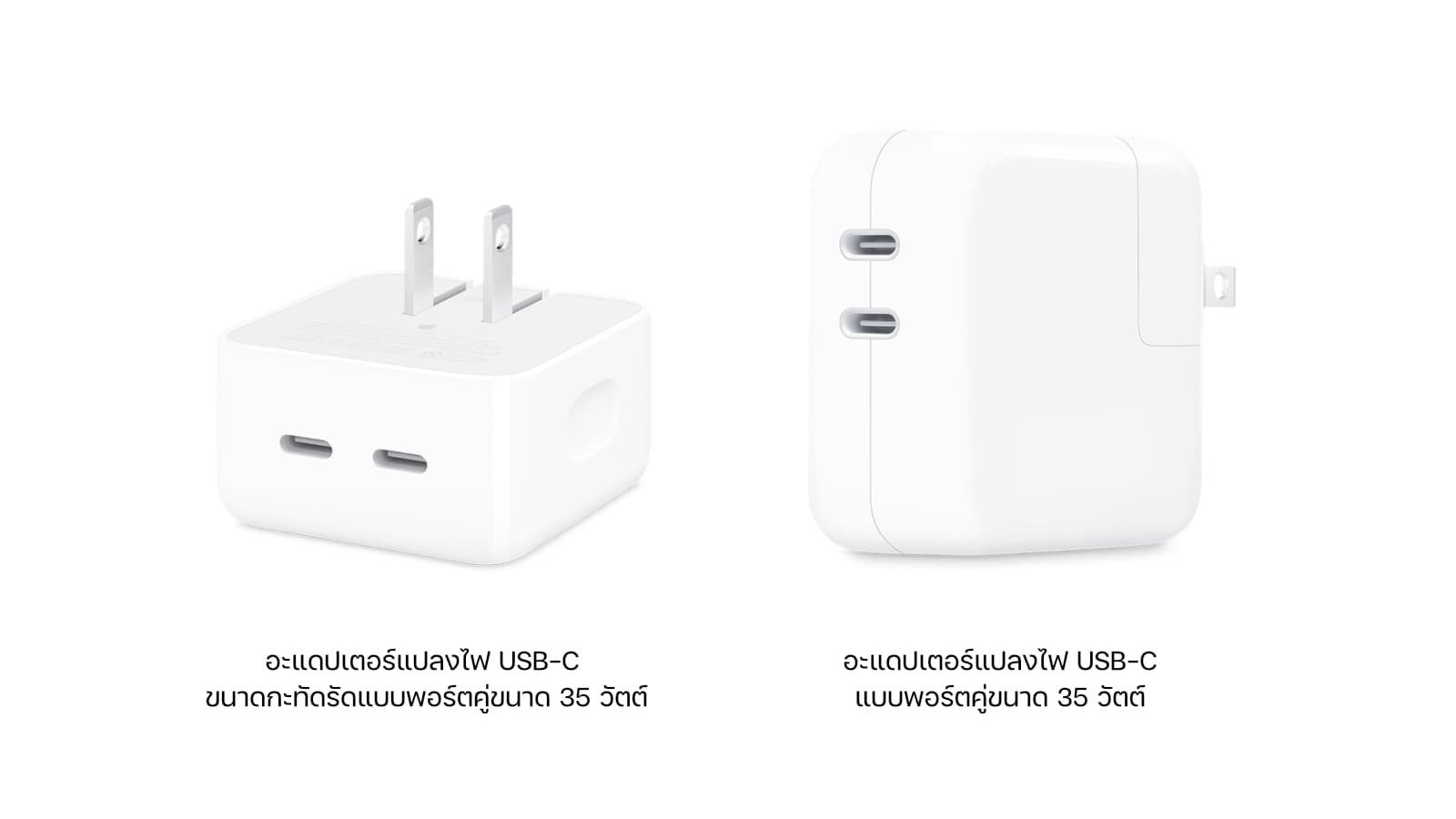 อะแดปเตอร์ USB-C ขนาดกะทัดรัดพอร์ตคู่ 35W และ อะแดปเตอร์ USB-C พอร์ตคู่ 35W เปิดขายแล้วที่ Apple Store Online ไทยในราคา ฿1,890 เท่ากัน สั่งซื้อได้ที่